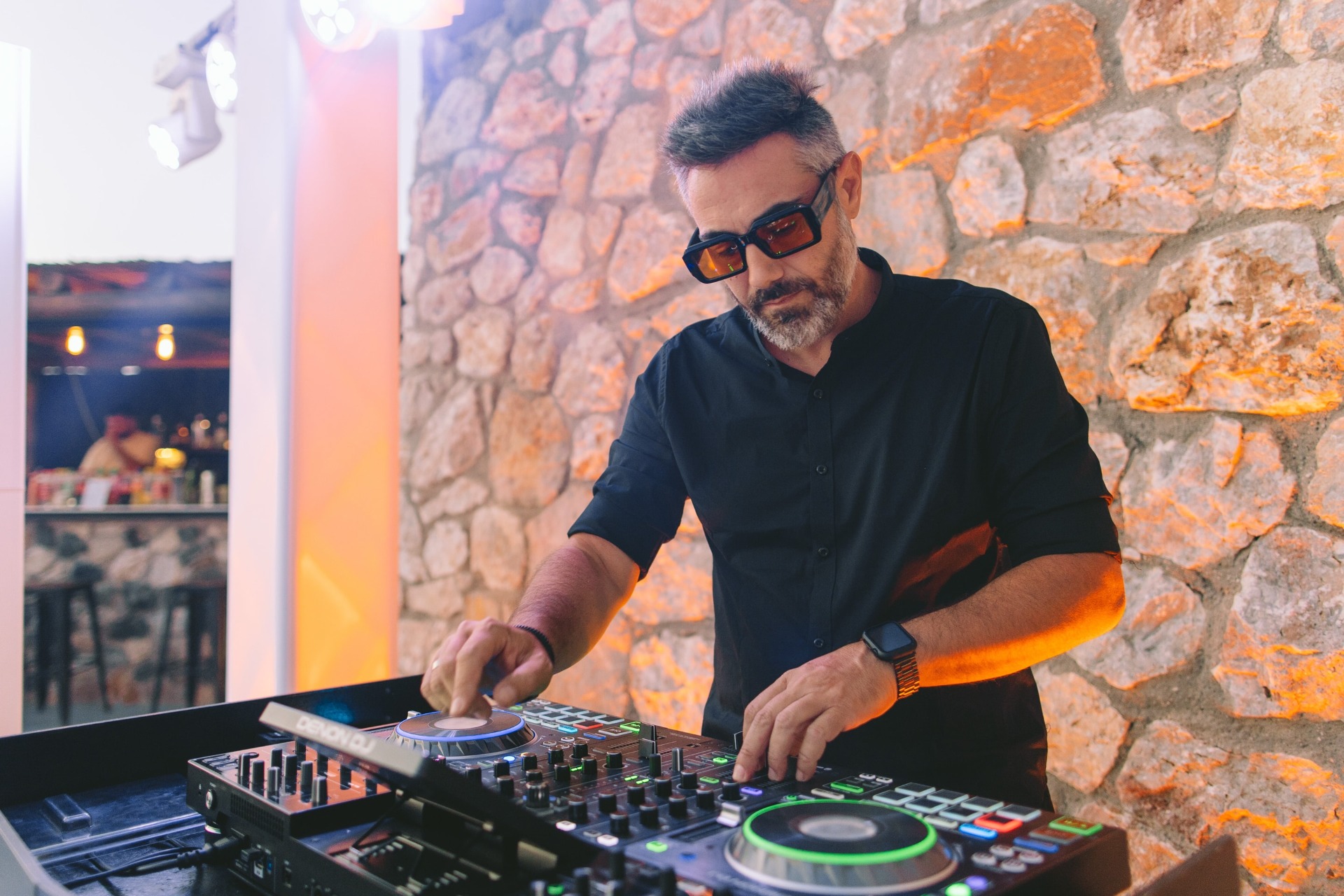 My artist name is Elias PLM, I'm 45 years old, and I have spent 28 years behind the decks — from high-energy nightclub nights to destination weddings that bring together guests from all over the world. Today, I specialize exclusively in premium private events and weddings in Santorini, where every moment deserves the perfect beat.